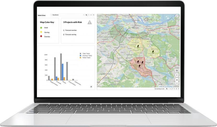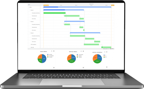 With the use of real-time dashboards and KPIs, monitoring project progress is simple. For project planning and data visualization along the production chain, use various tools including Gantt charts, status maps, and Gantt charts.