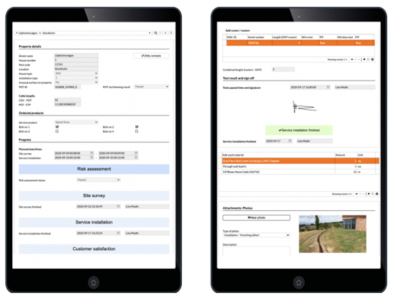 The tablet gives field engineers access to all work order details and includes built-in instructions on how to complete and record their work so that no important information is overlooked. Both offline and online documentation are supported by the application.