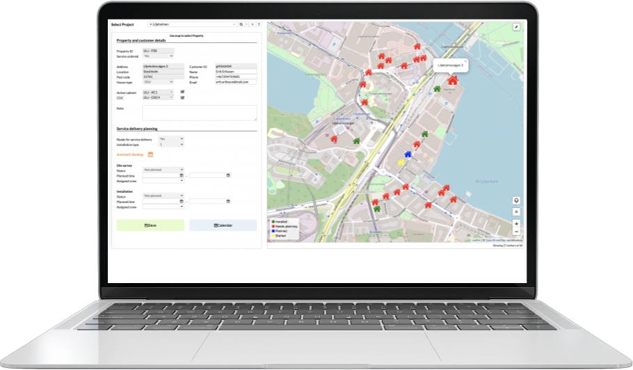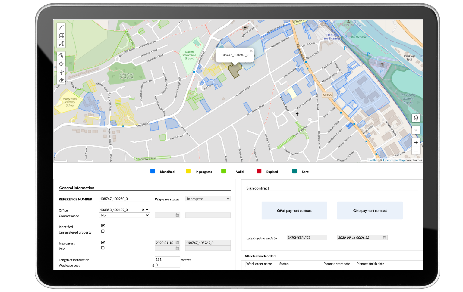 Link work orders to Wayleaves and other permits to ensure that everyone is present at the appropriate time. Easily coordinate permitting, prioritize wayleaves, and stop or proactively redirect trench lines by visualizing regional government data and network architecture.